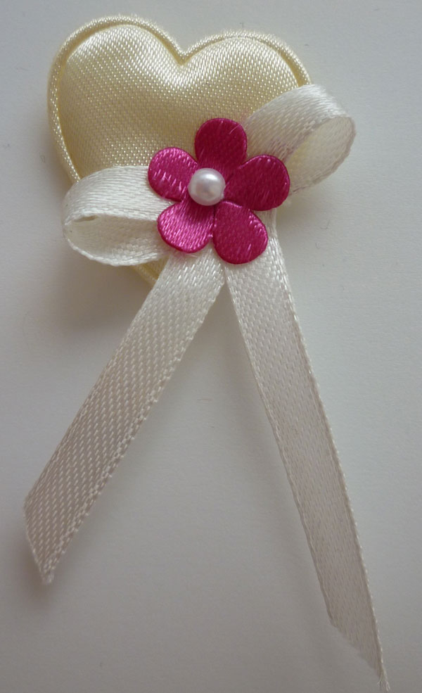 Srdiečko je zdobené cyklámenovým kvietkom a bielou stuhou. V ponuke aj iné farebné kombinácie.