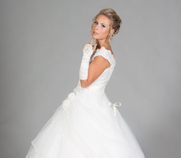 Romantické svadobné šaty s jemným srdiečkovým výstrihom a rozprávkovou sukňou z tylu.